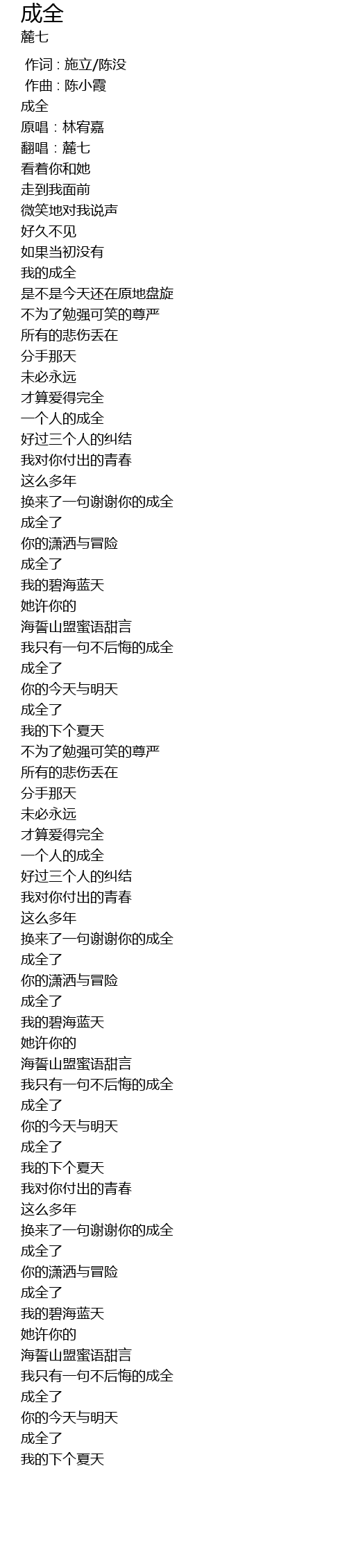 | [02:52.276] | 成全了 |