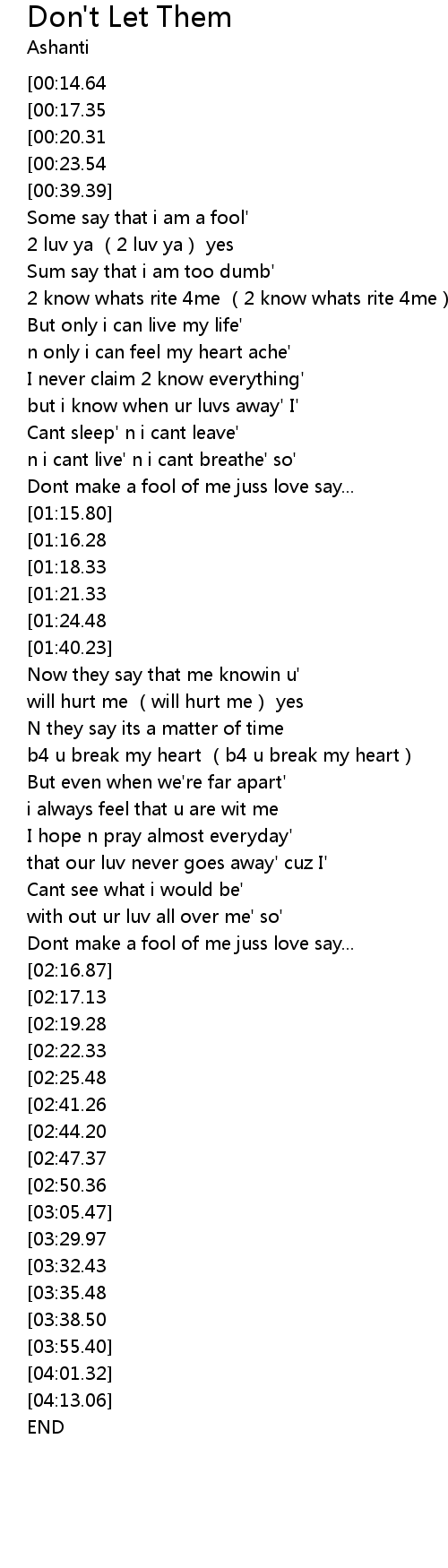 | [01:10.68] | Dont make a fool of me juss love say... |