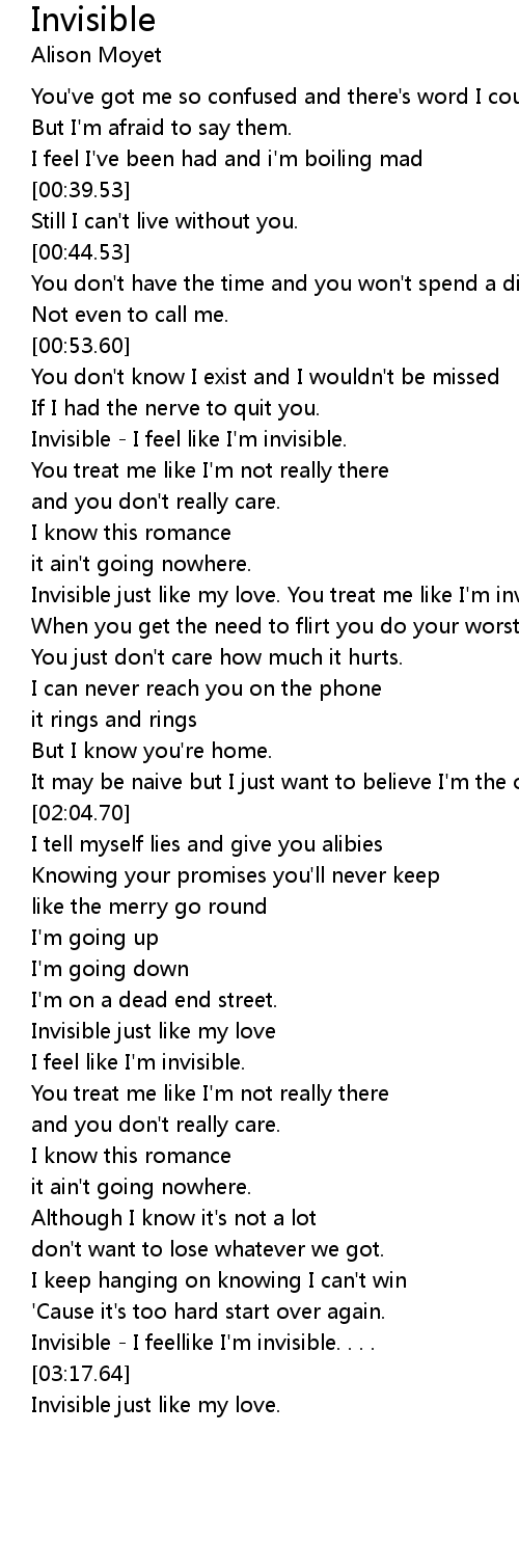 Invisible - I feel like I'm invisible. |
