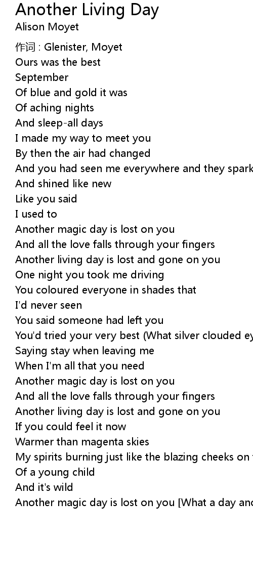 | Another magic day is lost on you What a day another living day |