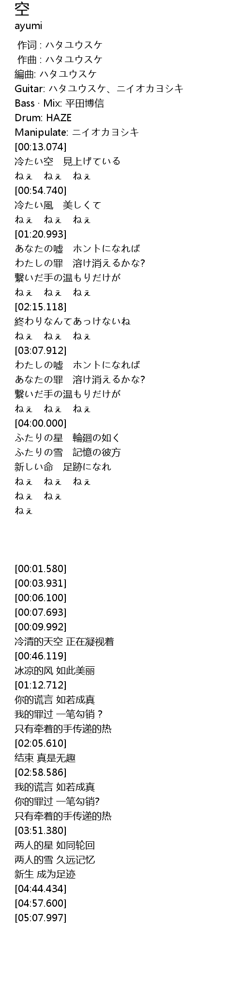 | [00:03.931] | Guitar: ハタユウスケ、ニイオカヨシキ |