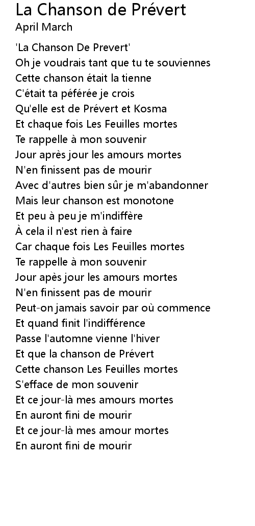 | Et que la chanson de Prévert | |