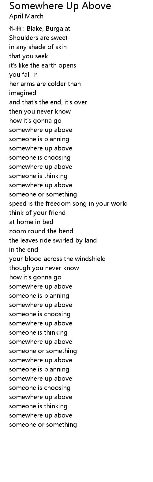 | somewhere up above | |
