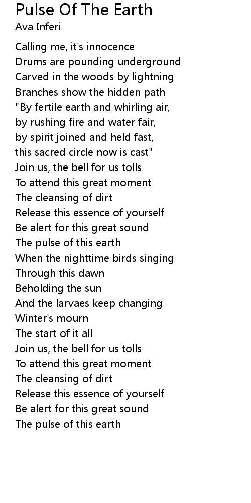 The pulse of this earth |