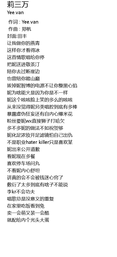 | [00:50.122] | 不是职业hater killer只是喜欢某 |