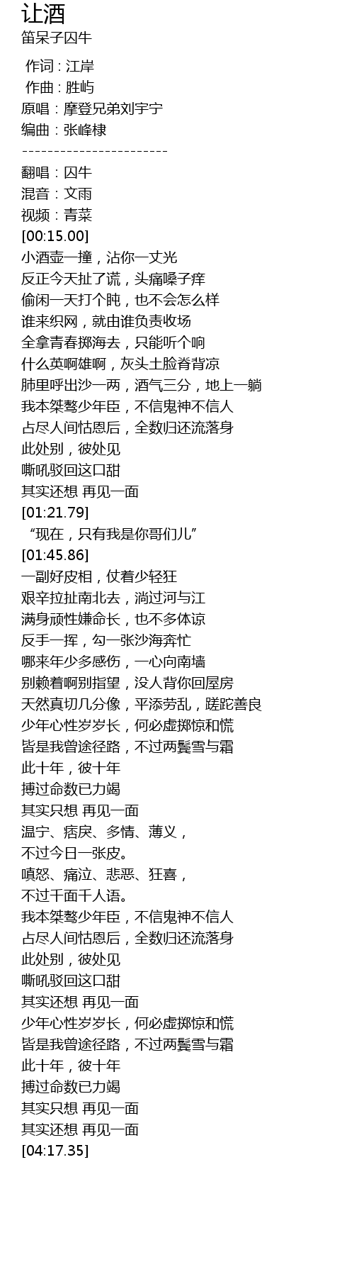 | [00:10.00] | 翻唱:囚牛 |