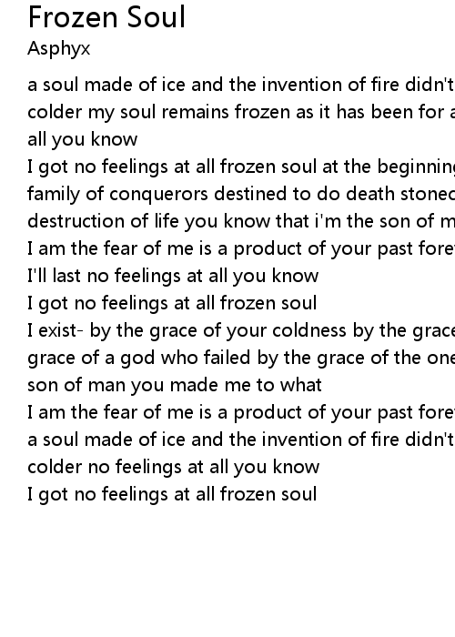 a soul made of ice and the invention of fire didn't melt my heart it got even colder my soul remains frozen as it has been for a thousand years no feelings at all you know