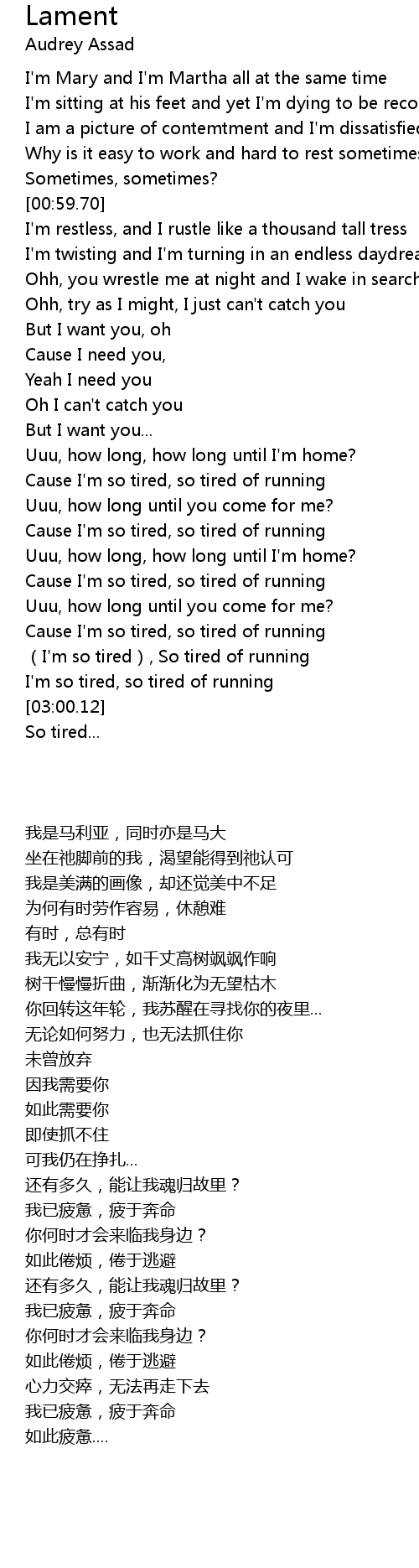 | [02:54.37] | I'm so tired, so tired of running |