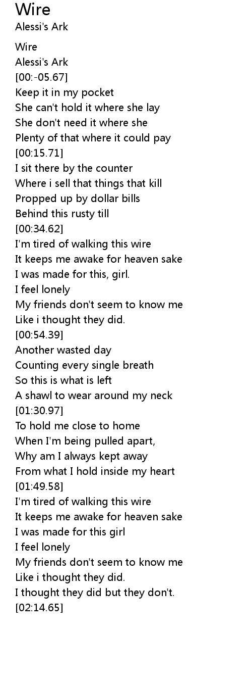 I'm tired of walking this wire |