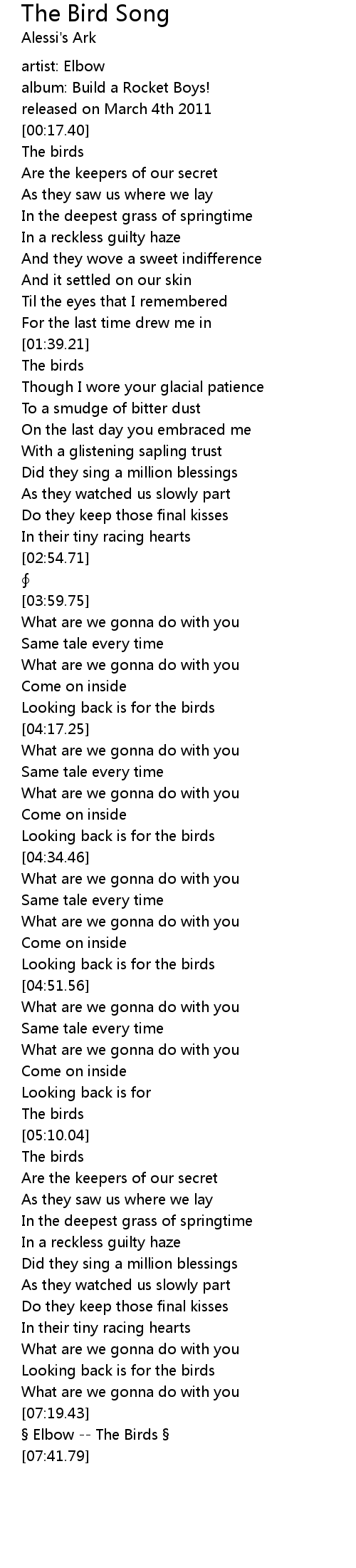 | [01:42.20] | The birds |