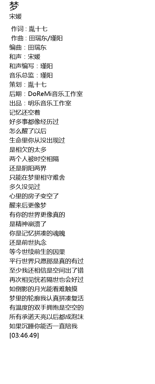 | [00:04.61] | 编曲:田瑞东 |