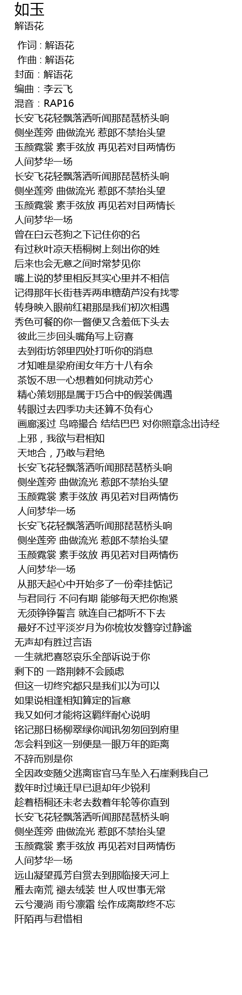 | [00:00.000] | 作词 : 解语花 |