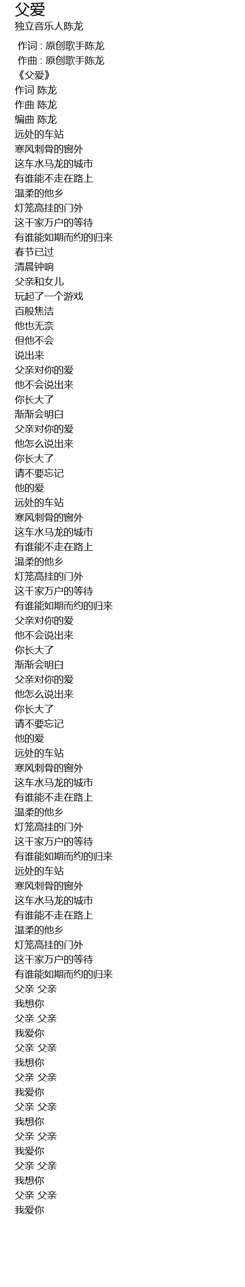 | [01:21.213] | fù qīn duì nǐ de ài |