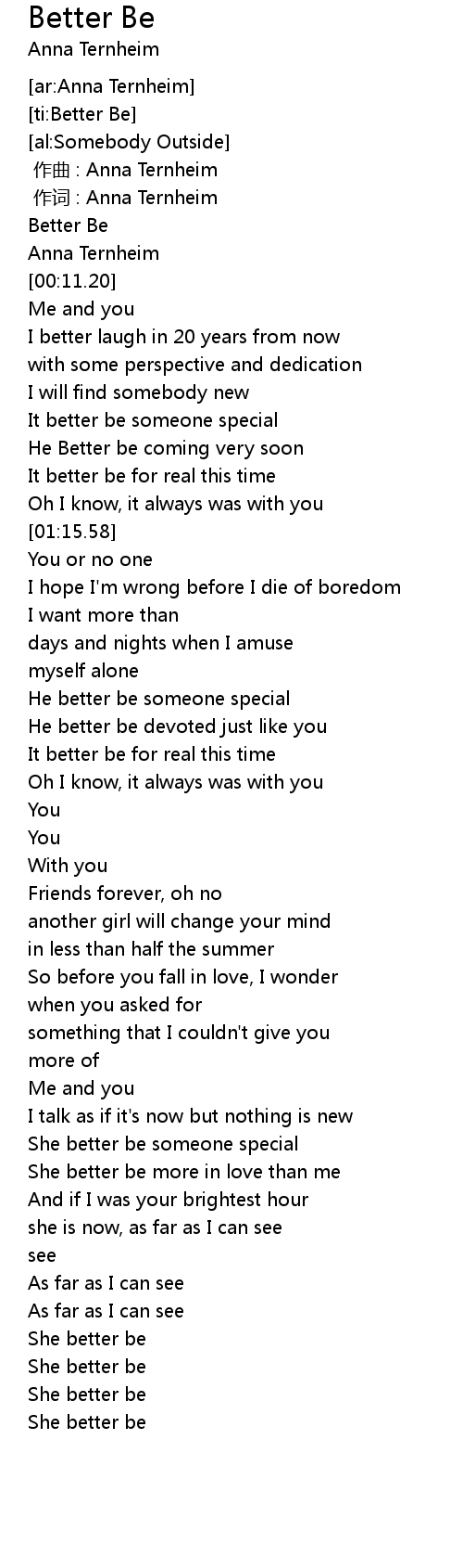 | [00:00.00] | zuo qu : Anna Ternheim |