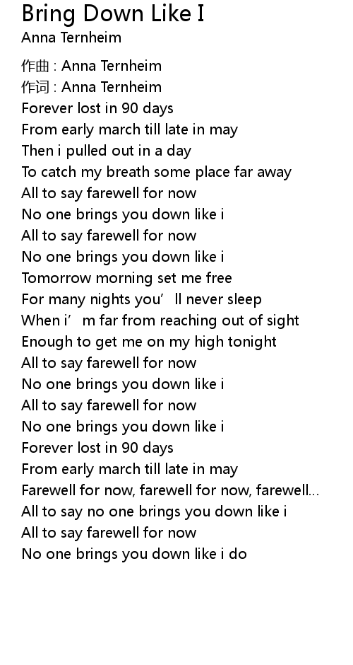 | Song | Bring Down Like I |