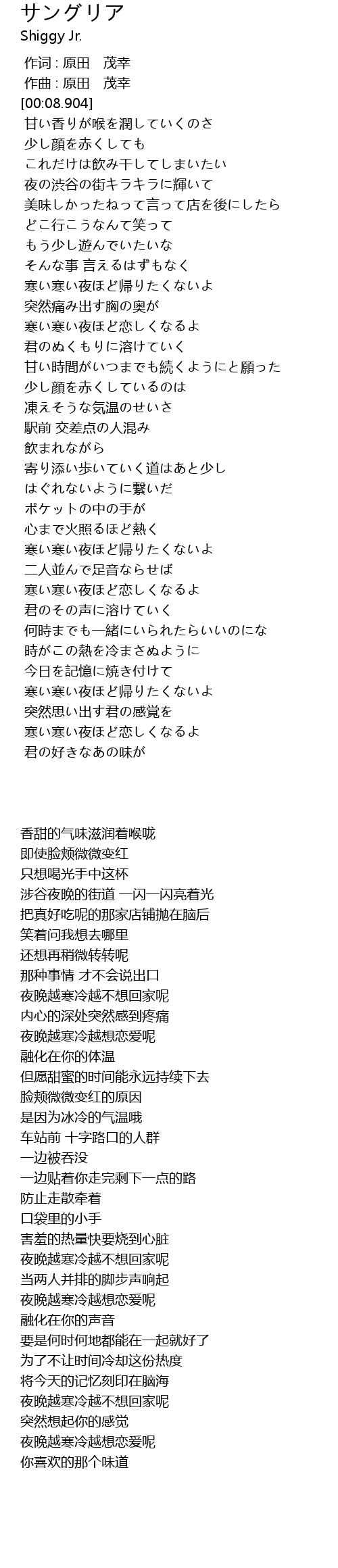 | [00:38.752] | 夜の渋谷の街キラキラに輝いて |