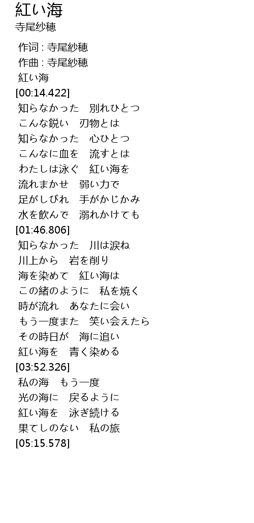 作词 : 寺尾紗穂 |