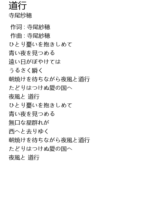 | [00:00.000] | 作词 : 寺尾紗穂 |