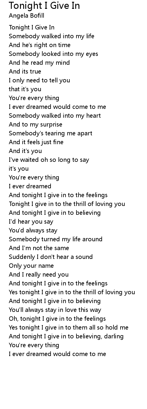 Tonight I Give In |