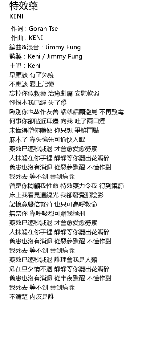 | [00:06.930] | 監製:Keni / Jimmy Fung |