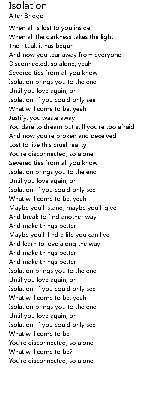 Isolation brings you to the end |