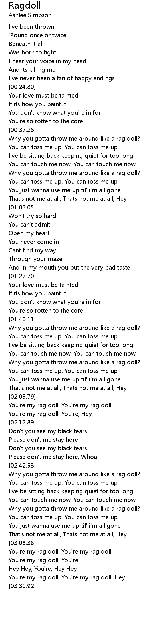 You're my rag doll, You're, Hey |