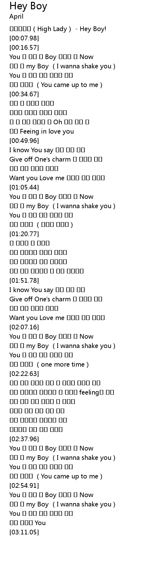 | [00:00.38] | 하이레이디(High Lady) - Hey Boy! |