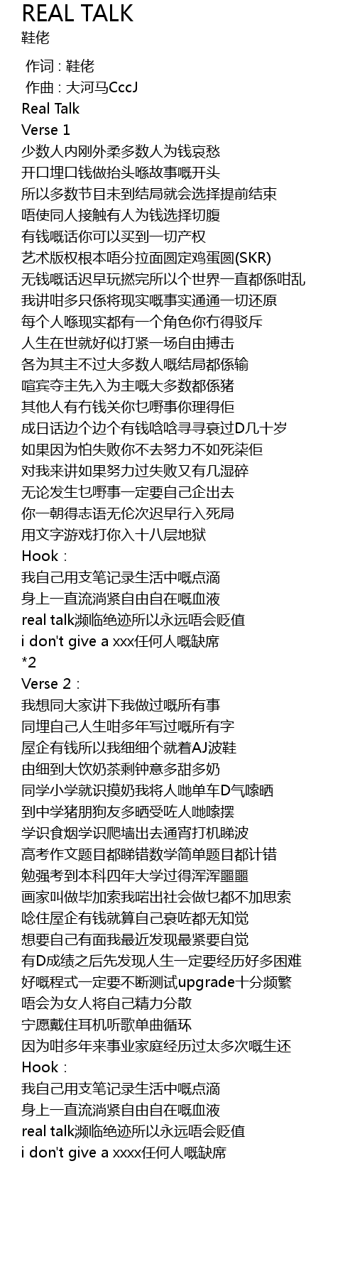 | [02:55.708] | real talk濒临绝迹所以永远唔会贬值 |