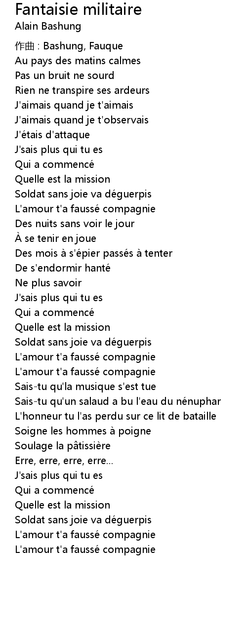 | L' honneur tu l' as perdu sur ce lit de bataille | |