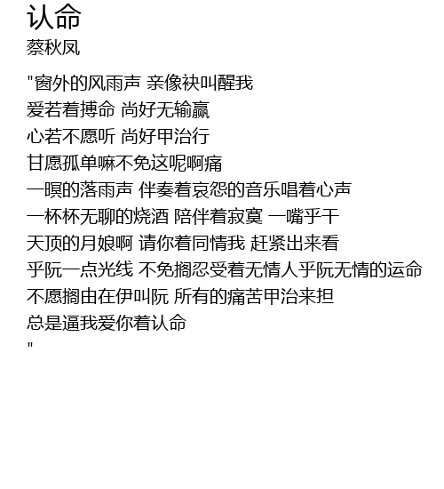 | yī míng de luò yǔ shēng bàn zòu zhe āi yuàn de yīn yuè chàng zhe xīn shēng | |