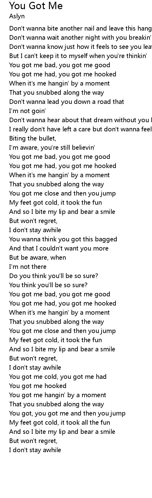 You got me bad, you got me good |