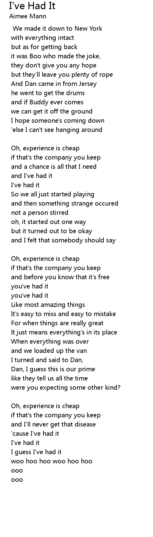 'cause I've had it |