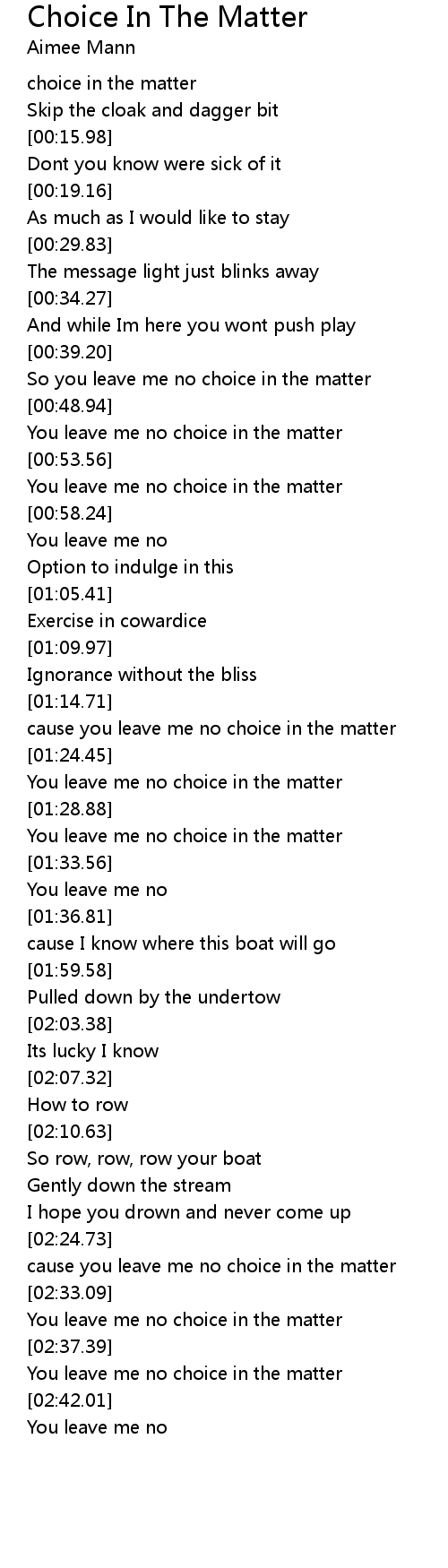 cause you leave me no choice in the matter |