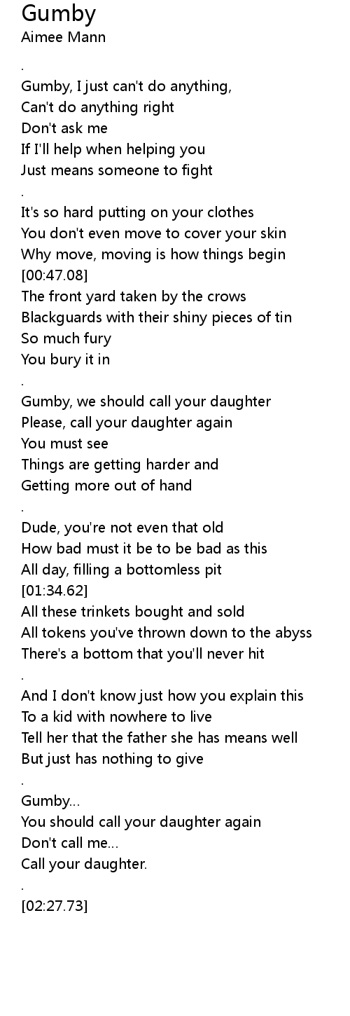 | [02:10.48] | Gumby |