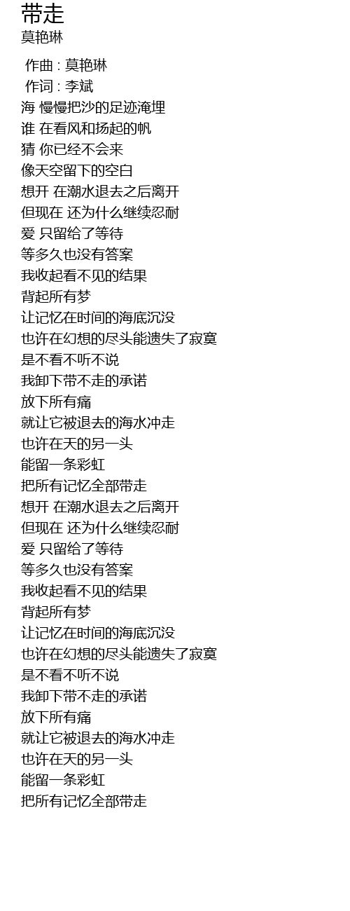 | [00:00.00] | 作曲 : 莫艳琳 |