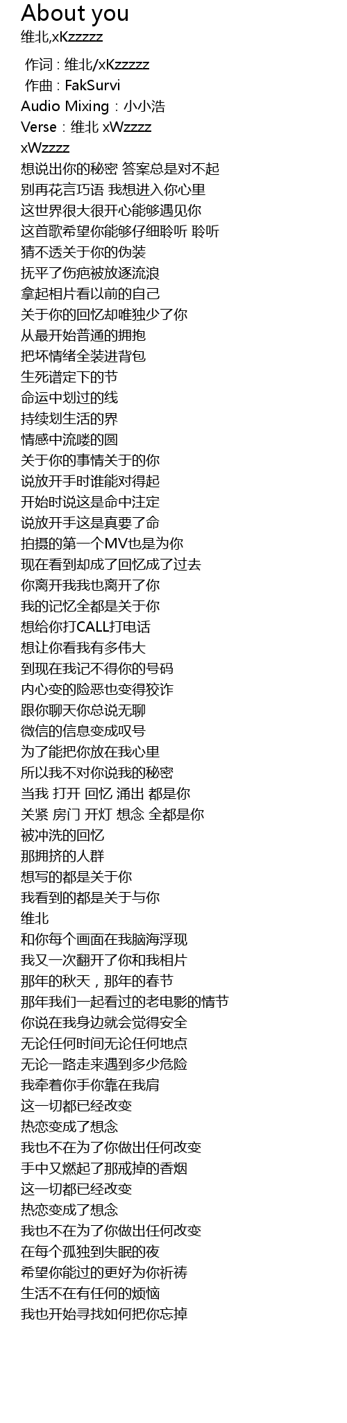 | [00:00.000] | zuo ci : wei bei xKzzzzz |