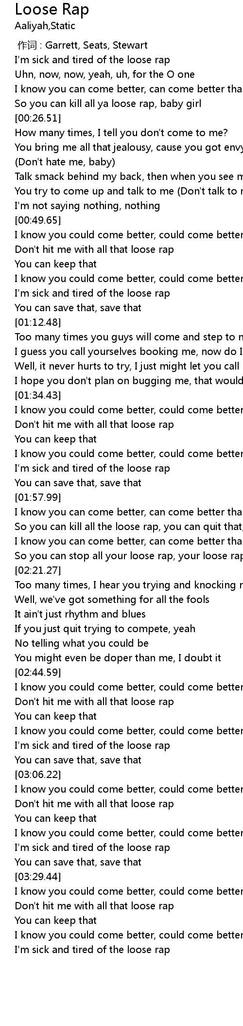 | [00:00.00] | I' m sick and tired of the loose rap |