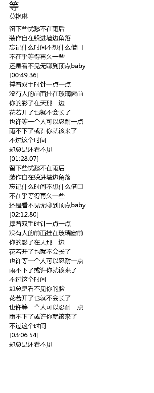| [00:39.27] | bù zài hu děng de zài jiǔ yī xiē |