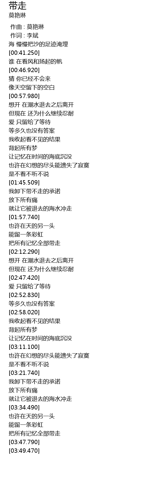| [00:59.350] | 想开 在潮水退去之后离开 |