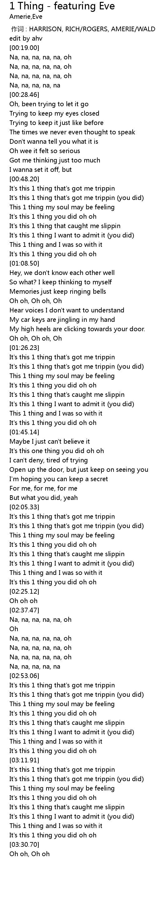 | [00:00.00] | 作词 : HARRISON, RICH/ROGERS, AMERIE/WALDEN, STANLEY |
