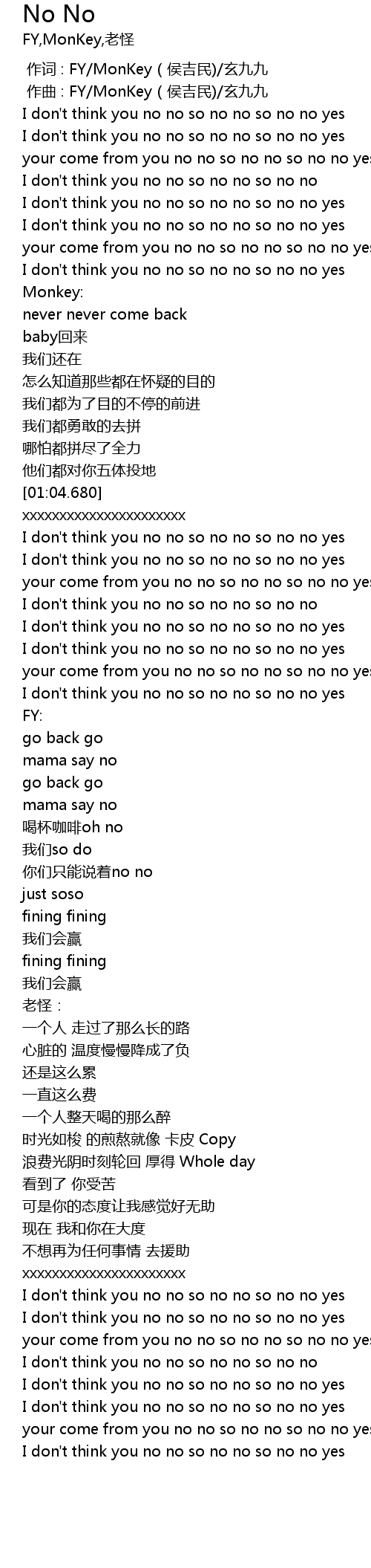 | [02:04.180] | 你们只能说着no no |