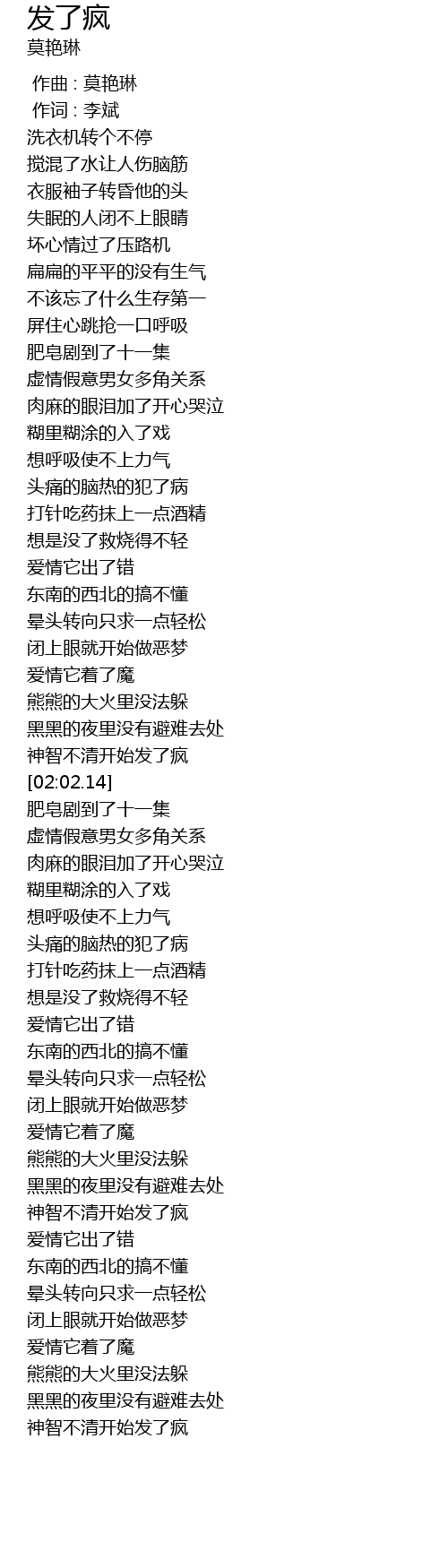 | [01:58.65] | 神智不清开始发了疯 |