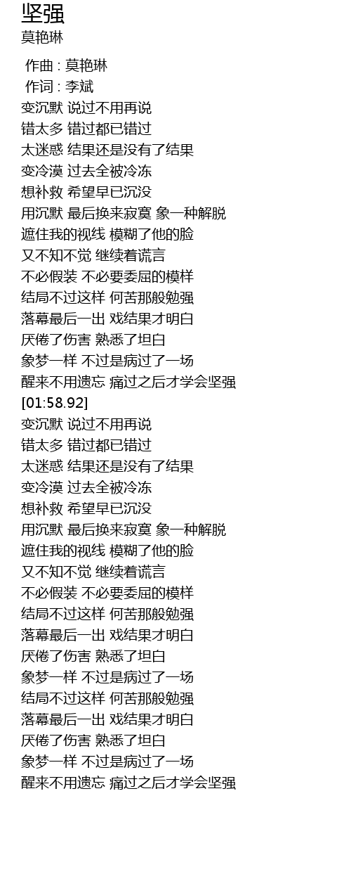 | [00:00.00] | 作曲 : 莫艳琳 |