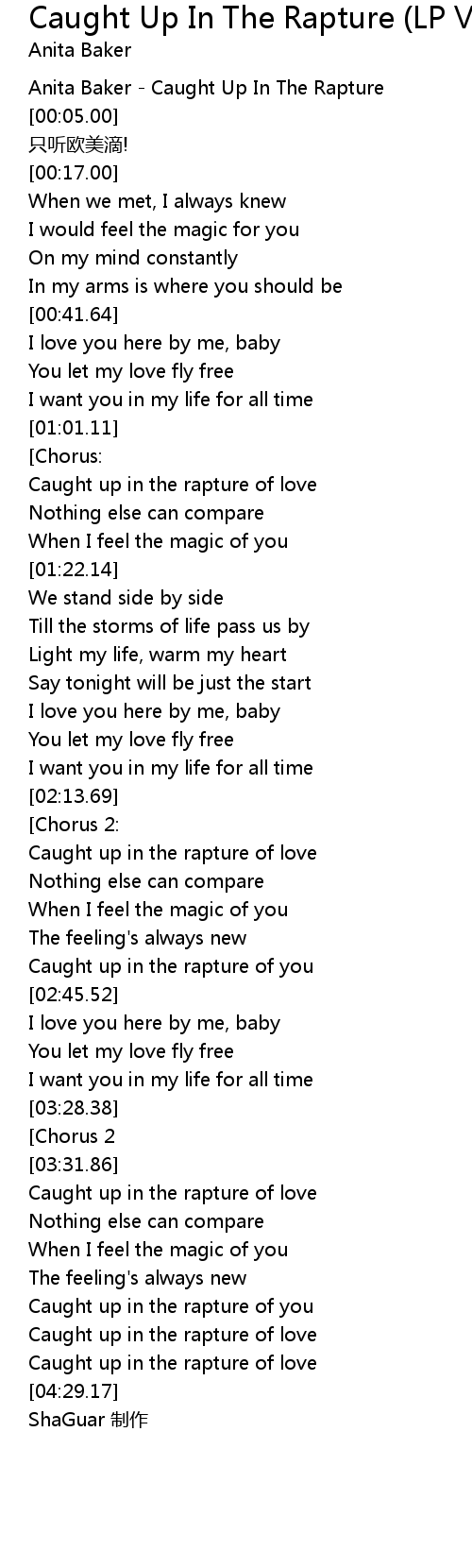 | [00:00.00] | Anita Baker Caught Up In The Rapture |