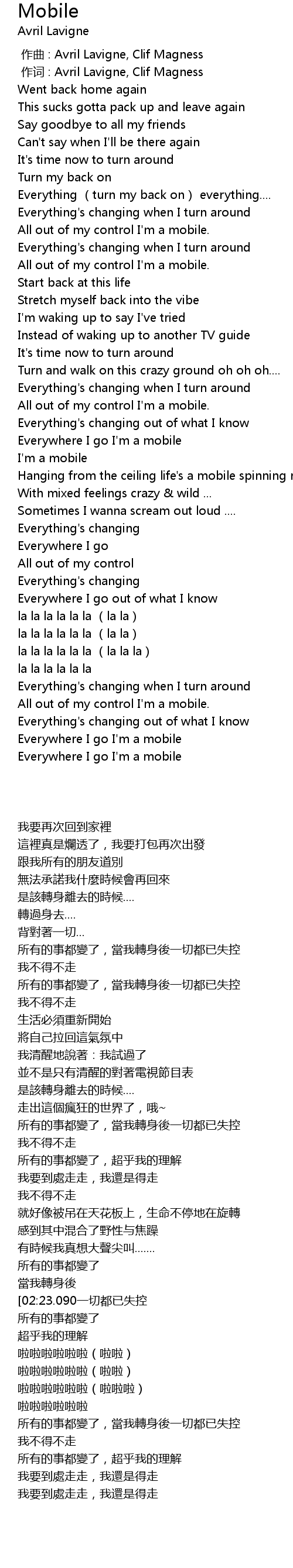 | [00:00.00] | zuo qu : Avril Lavigne, Clif Magness |