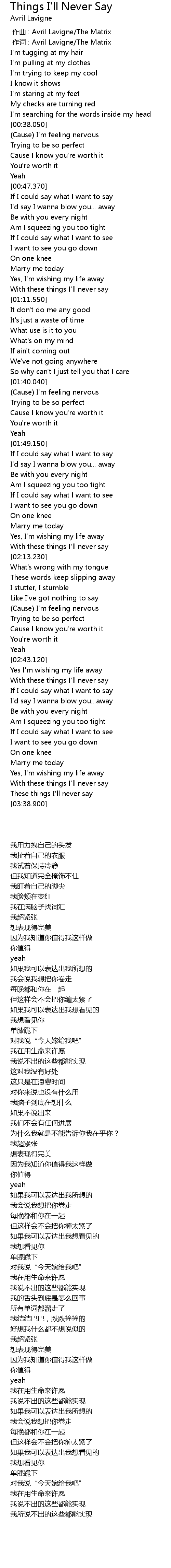 | [00:01.00] | 作词 : Avril Lavigne/The Matrix |