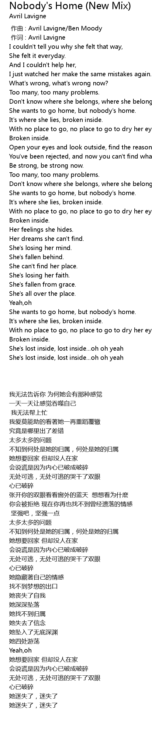 | [00:01.00] | 作词 : Avril Lavigne |