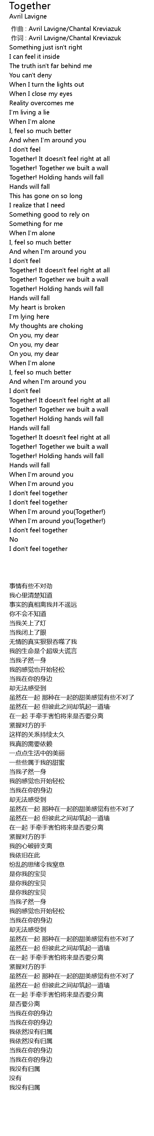 | [00:00.00] | 作曲 : Avril Lavigne/Chantal Kreviazuk |