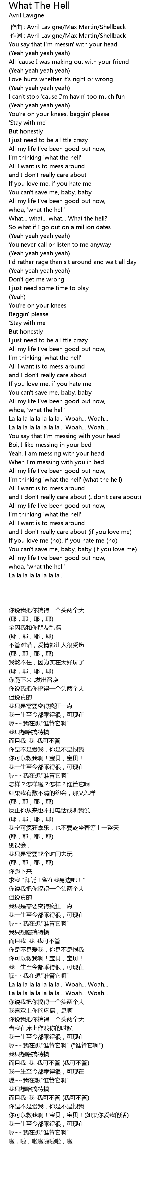 | [00:01.00] | 作词 : Avril Lavigne/Max Martin/Shellback |