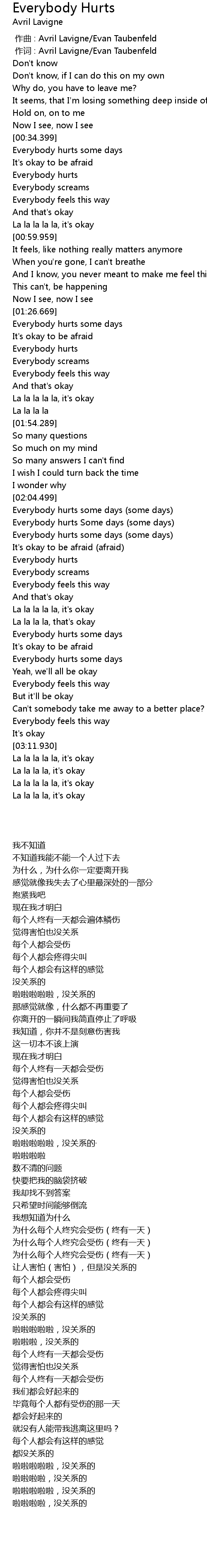 | [00:01.00] | 作词 : Avril Lavigne/Evan Taubenfeld |